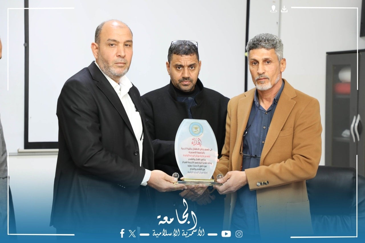 كما ألقى رئيس قسم رياض الأطفال د. محمد الوكيل وأ. محمد بلعيد كلمة عبّرا فيها عن شكرهما وتقديرهما لإدارة المركز على حفاوة الاستقبال، مؤكدين أهمية ربط المقررات النظرية بالتطبيق العملي من خلال الزيارات الميدانية الهادفة.