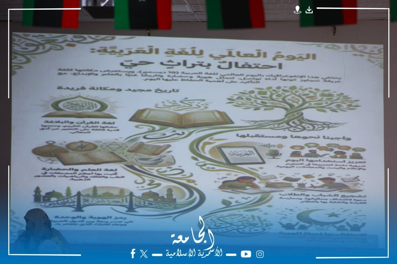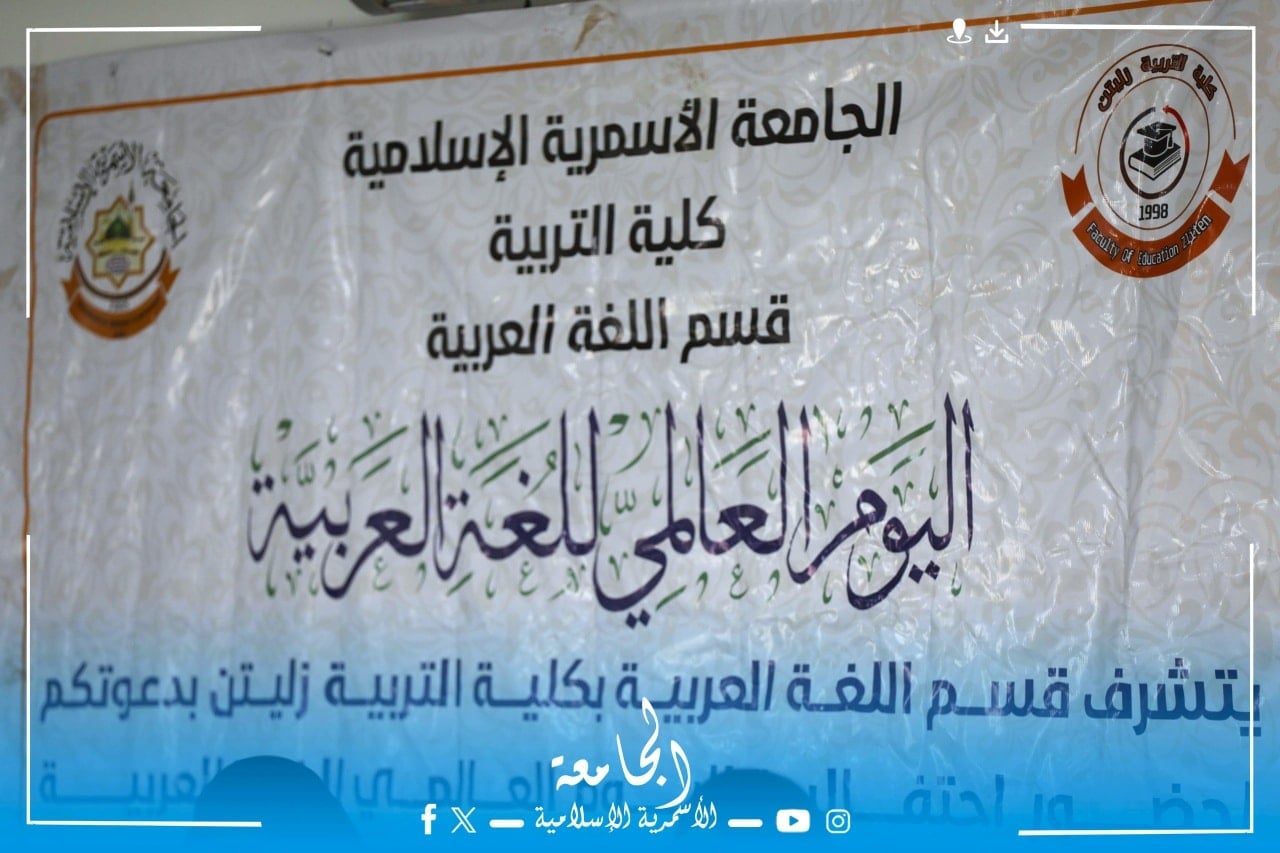 في إطار الاحتفاء باليوم العالمي للغة العربية، وحرصًا على إبراز مكانة العربية ودورها في البناء المعرفي والحضاري، نظّمت كلية التربية بـالجامعة الأسمرية بمدينة زليتن ملتقى اليوم العالمي للغة العربية، وذلك على تمام الساعة العاشرة والنصف من صباح يوم الاثنين الموافق 22/12/2025م.