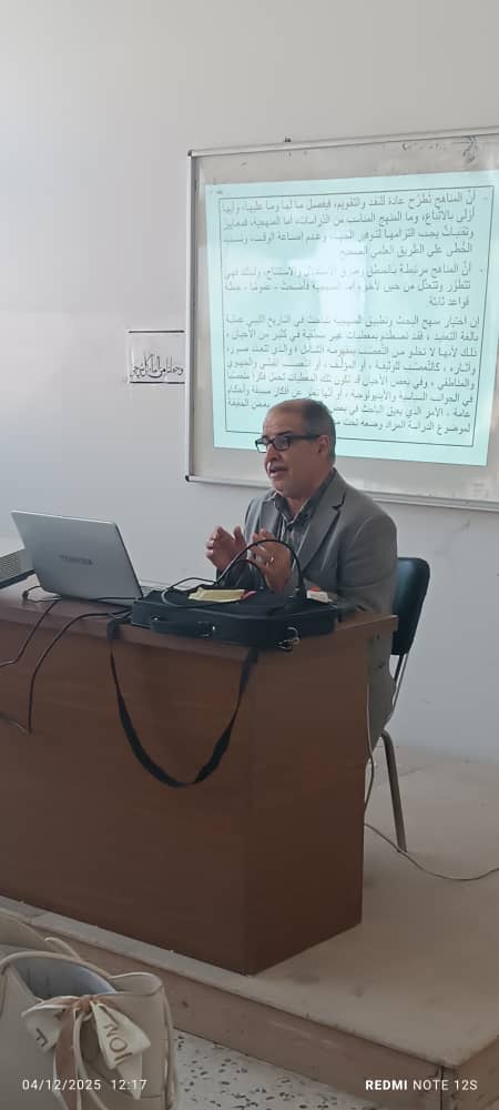 وتطرّق الدكتور حمودة إلى منهجية التأريخ الليبي وإشكالية التقليد، مشيراً إلى عدد من الإشكالات المرتبطة بمناهج كتابة التاريخ في السياق الليبي، وما يرتبط بها من تأثيرات خارجية وتراكمات قديمة، مؤكداً أهمية مراجعة الأدوات والمنطلقات العلمية التي يعتمد عليها الباحثون عند صياغة السرديات الوطنية، والسعي إلى بناء رؤية أكثر اتساقاً مع الواقع المحلي وطبيعته المتفردة.