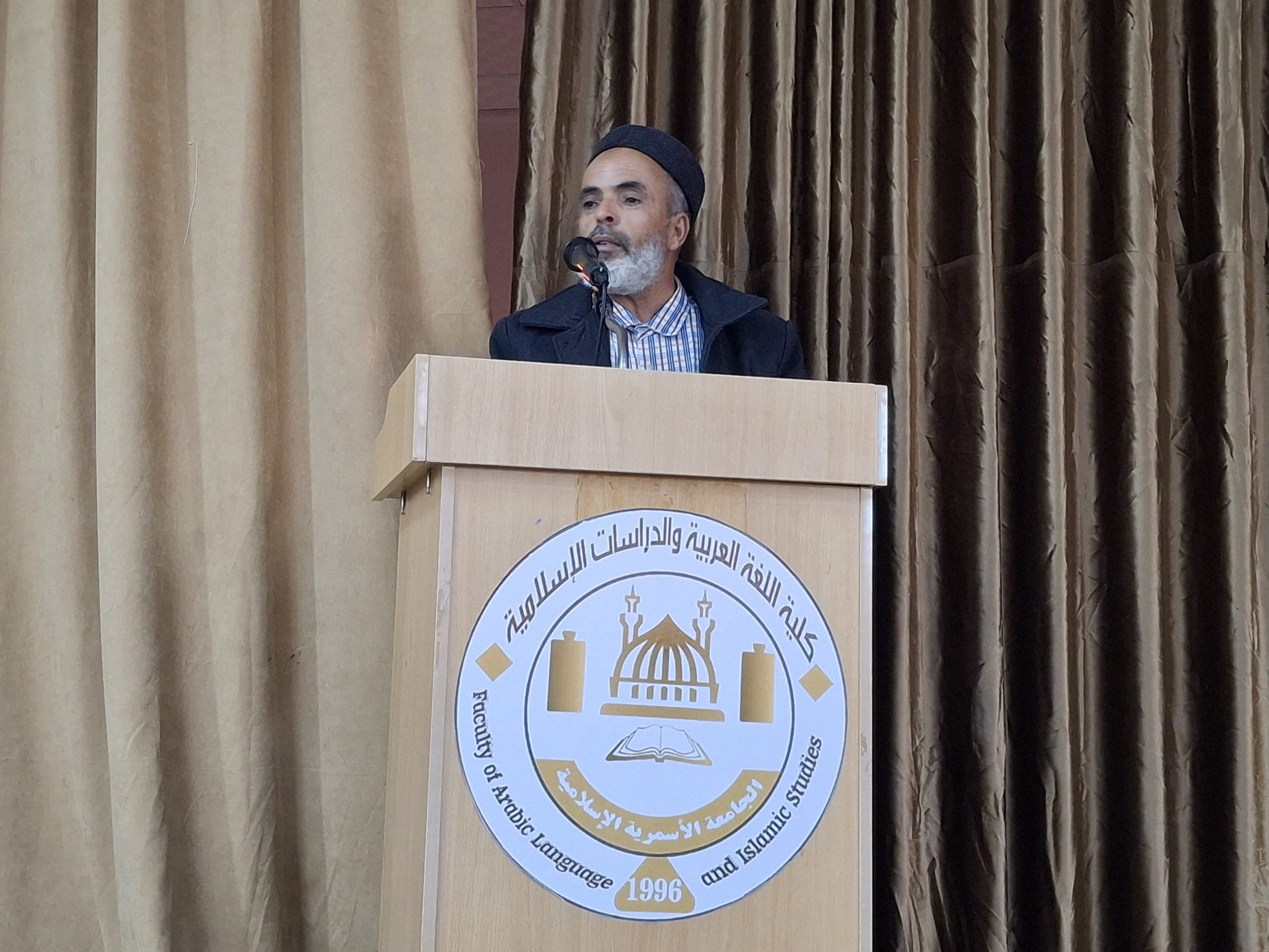 ومن جانبه، ألقى الدكتور أبوبكر محمد سويسي، رئيس قسم اللغة العربية، كلمة استعرض فيها الجهود الدؤوبة التي يبذلها القسم لخدمة لغة القرآن، وتعزيز مكانتها في ميادين البحث العلمي والأنشطة الثقافية.
