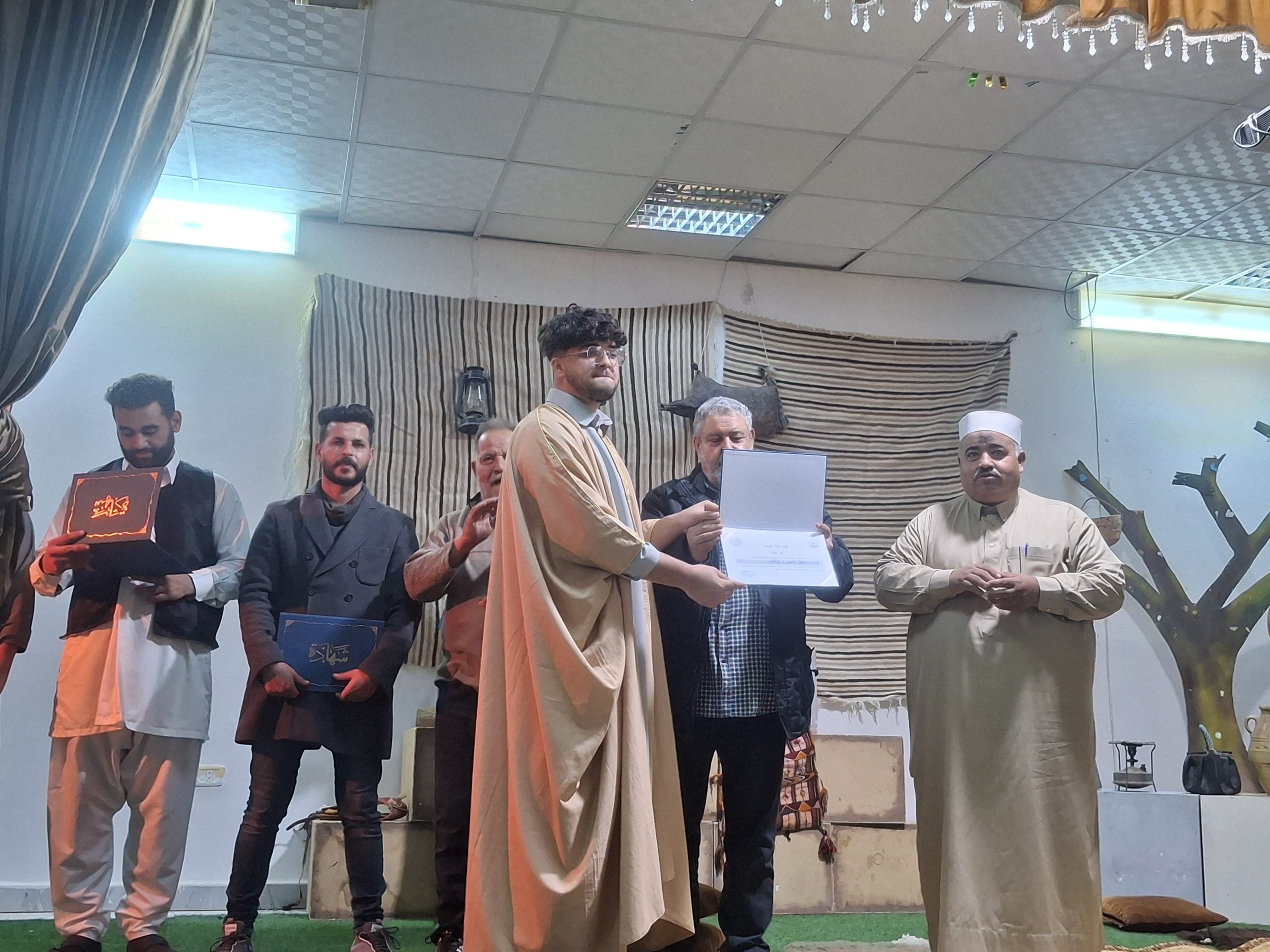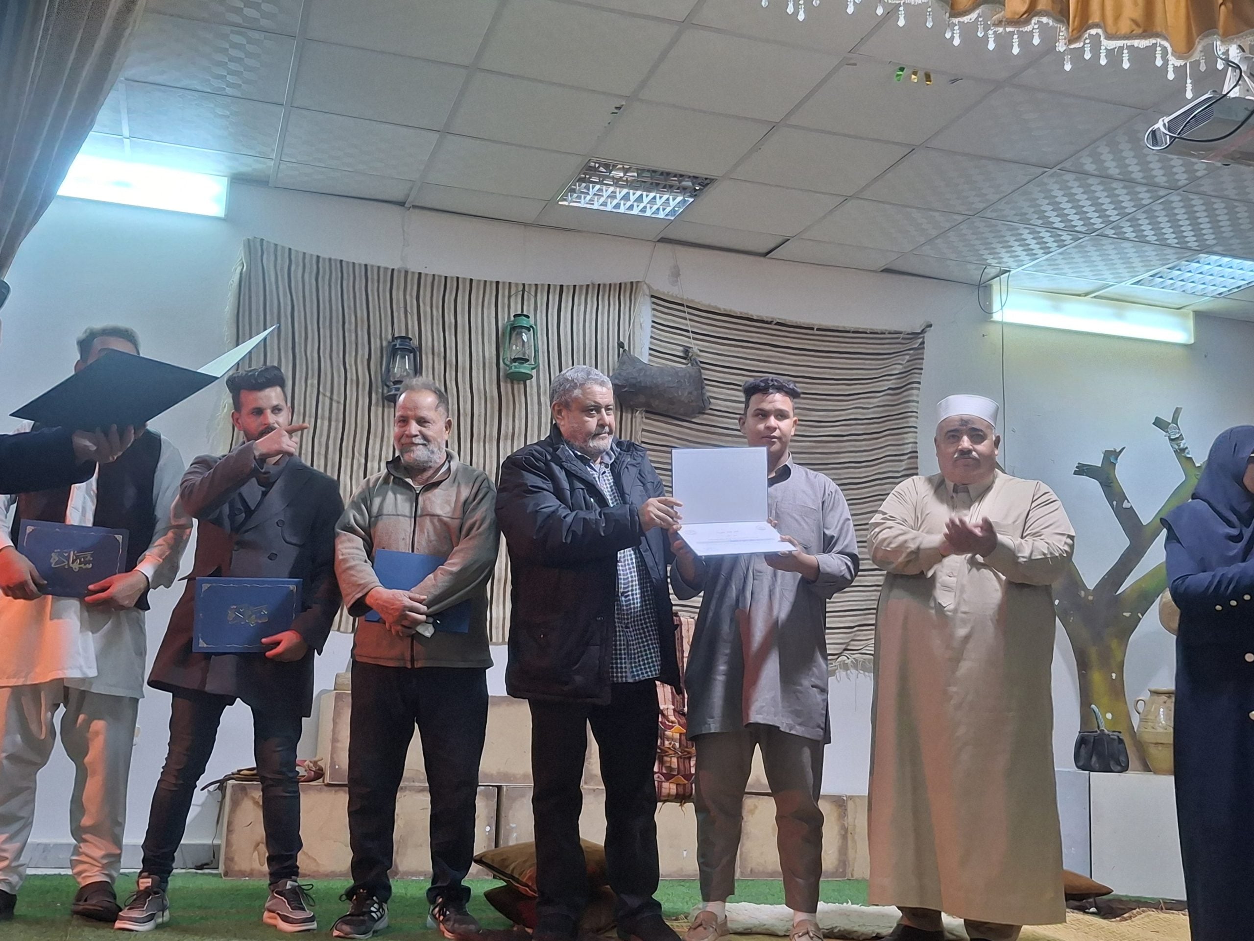 وفي لفتة تقدير للمواهب والجهود، اختُتم الحفل بتكريم كوكبة من المبدعين، حيث تم تكريم الطالبتين المتميزتين من قسم اللغة العربية الفائزتين في مسابقة القصة القصيرة على مستوى الجامعة، الطالبة إلهام هويدي عاشور لحصولها على المرتبة الأولى، والطالبة فاطمة الزهراء فتحي حكومة لفوزها بالمرتبة الثانية.