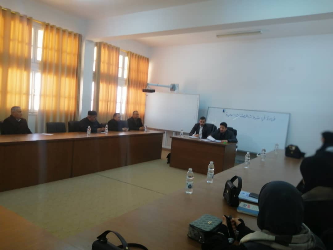 وقد قدَّم الجلسة عضو هيئة التدريس بالقسم أ. يوسف بن عائشة، وأدار محاورها عضو هيئة التدريس بالقسم أ. مختار بن عاشور، بحضور لفيفٍ من أعضاء هيئة التدريس بالكلية، إلى جانب عدد من الطلاب.