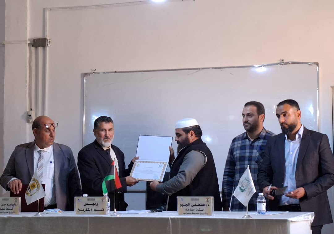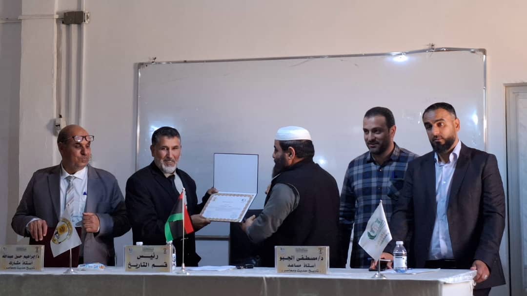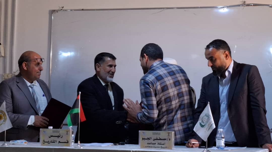 نظم قسم التاريخ يوم السبت الموافق 11-4-2026م ورشة عمل عنوان (المخطوط والوثيقة وأهميتها في كتابة البحث العلمي) وذلك بمناسبة اليوم العالمي للمخطوط العربي، ألقى الورشة الدكتور مصطفى الجبو والدكتور ابراهيم حسين ، حيث تناولا فيها أهمية المخطوطات العربية من الناحية العلمية والتاريخية ، وكذلك سبل الحفاظ عليها ، هذا وحضر الورشة السيد عميد الكلية الدكتور أنور عصمان وعدد من أعضاء هيئة التدريس وعدد من طلاب الدراسات العليا وطلاب الليسانس ، ولفيف من المهتمين بالمخطوط العربي.