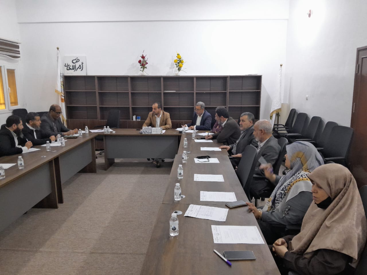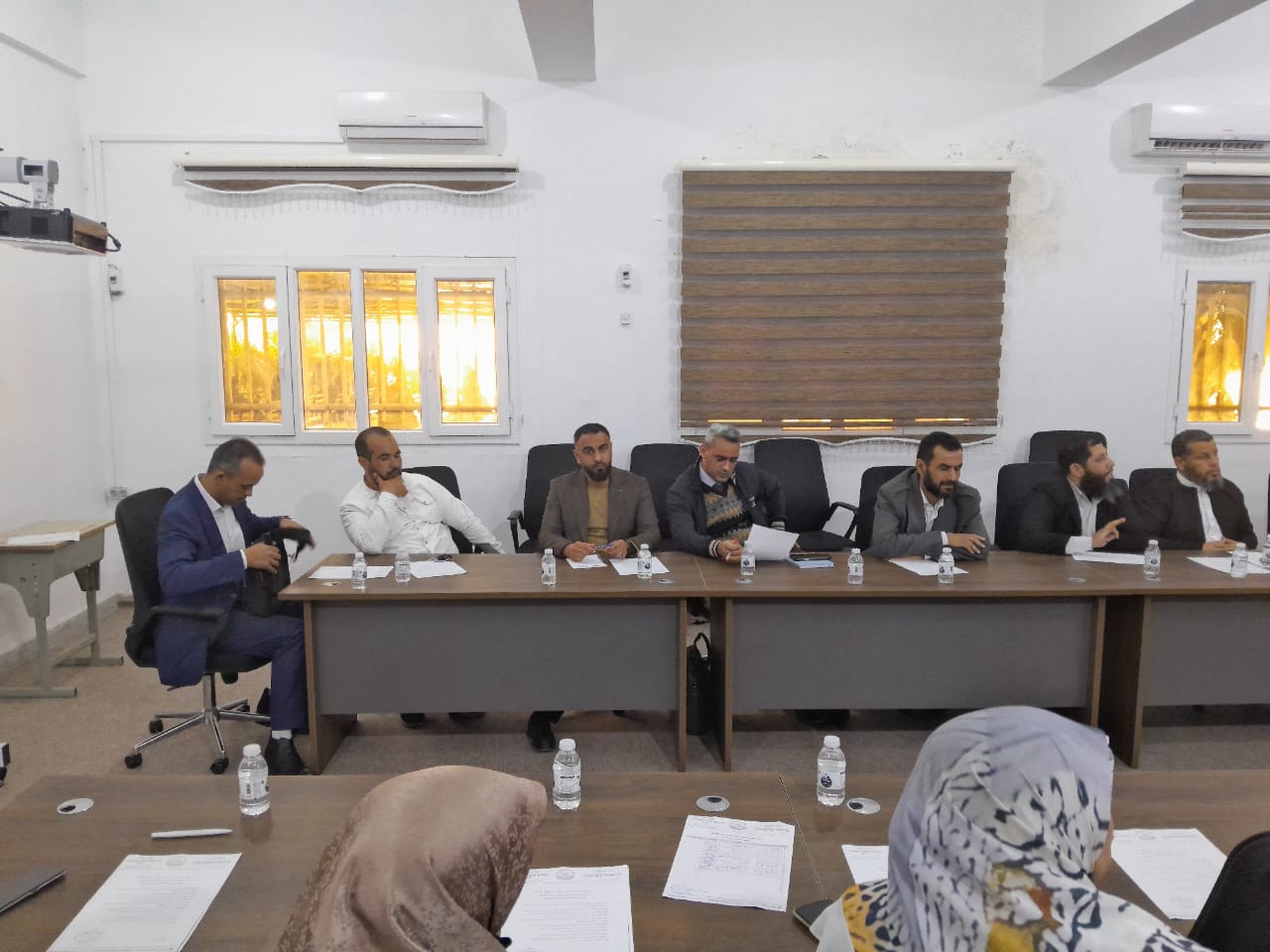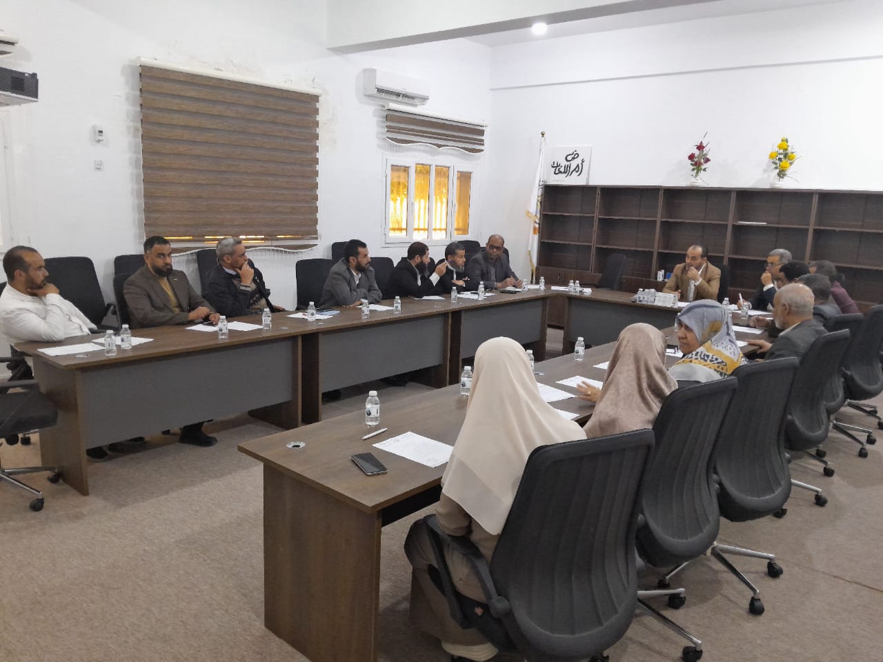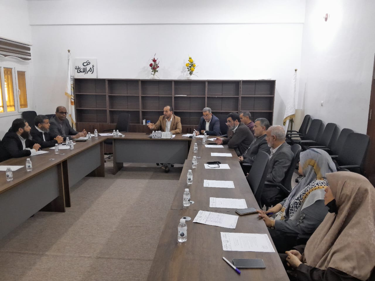 عقد يوم الأربعاء الموافق 2026/4/15م بقاعة فلسطين للاجتماعات وعلى تمام الساعة العاشرة صباحا الاجتماع الأول لمجلس الكلية لفصل الربيع ، برئاسة السيد عميد الكلية وحضور السيد وكيل الكلية للشؤون العلمية والسادة رؤساء الأقسام العلمية ومدراء المكاتب الإدارية ، ومسجل الكلية ،افتتح الاجتماع بكلمة ترحيبية من السيد العميد لمجلس الكلية ، من ثم بدأ عرض بنود الاجتماع لمناقشتها والتي تهم العملية التعليمية والتنظيمية داخل الكلية والتي من أهمها اعتماد محضر اجتماع مجلس الكلية السابق ، وكذلك مناقشة تفعيل عدد من الشعب داخل بعض الأقسام العلمية ، واعتماد العمل بالخطة الجديدة لقسم الجغرافيا بالمسمى الجديد وهو قسم الجغرافيا ونظم المعلومات الجغرافية، كما تم مناقشة بعض النقاط التنظيمية الخاصة بمكتب مسجل الكلية.