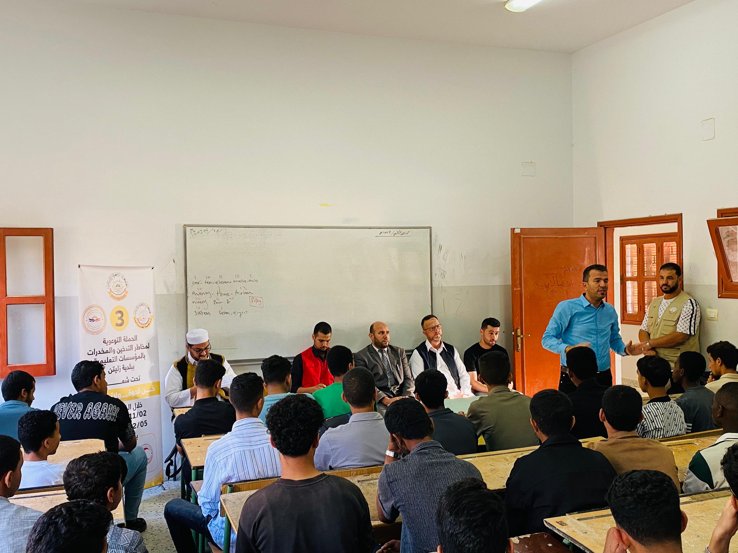 واستهل فريق الحملة برنامجه بزيارة إلى المعهد المتوسط للمهن الميكانيكية والكهربائية بزليتن، حيث ألقى عدد من أعضاء هيئة التدريس بالجامعة مجموعة من المحاضرات التوعوية التي تناولت الأبعاد الشرعية والقانونية والاجتماعية والنفسية والصحية لآفة التدخين وتعاطي المخدرات، مؤكدين على ضرورة نشر الوعي بخطورة هذه الظواهر على الفرد والمجتمع.