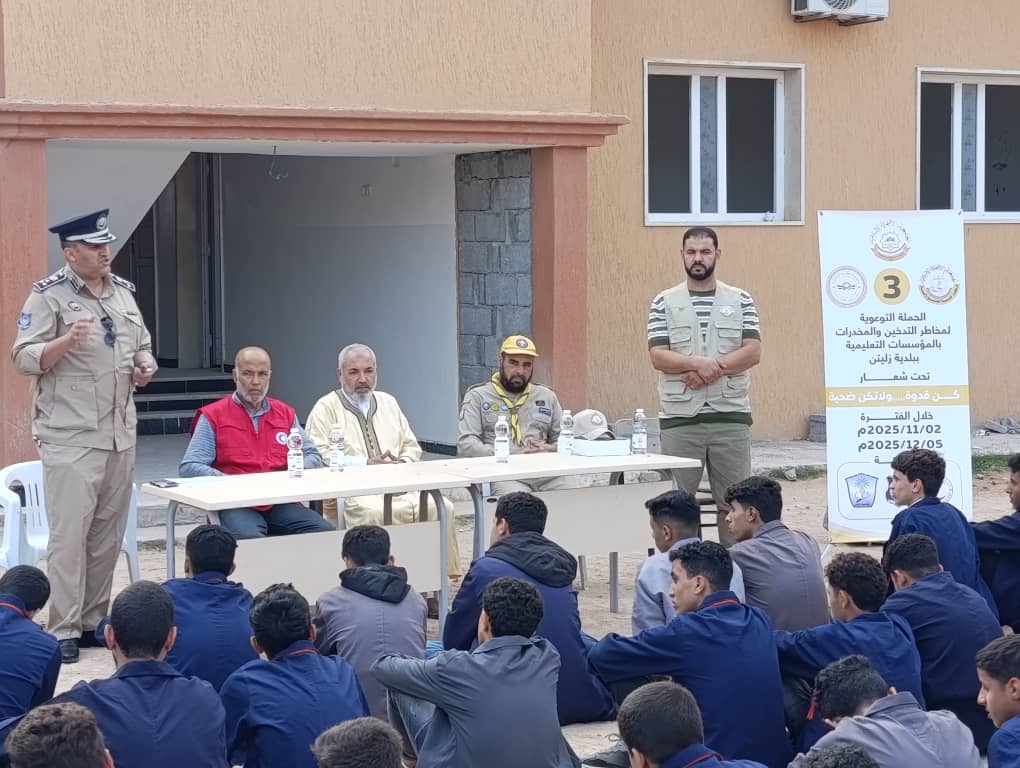 لليوم الثاني على التوالي… حملة التوعية من مخاطر التدخين والمخدرات تواصل نشاطها في إطار جهود الجامعة الأسمرية الإسلامية لنشر الوعي وبناء جيل واعٍ ومسؤول، واصلت حملة التوعية من مخاطر التدخين والمخدرات وباشراف مركز خدمة المجتمع والبيئة نشاطها لليوم الثاني على التوالي بزيارة إلى المعهد الفني المتوسط للمهن الميكانيكية والكهربائية – زليتن.