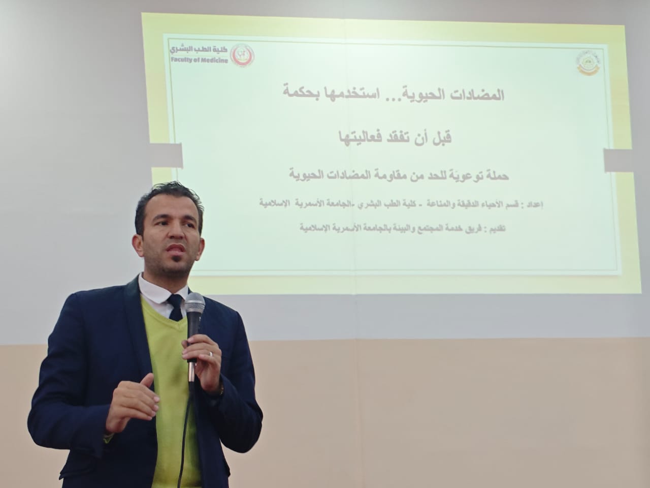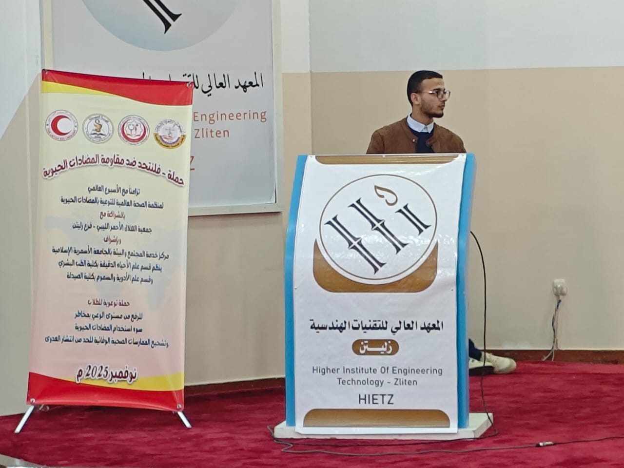 حيث اقيمت يوم الخميس الماضي محاضرة توعوية بمدرج المعهد العالي للتقنيات الهندسة بزليتن حضرها العديد من الاساتذة والموظفين والطلاب والطالبات تناولت التنبيه من خطر سواء استخدام المضادات الحيوية.