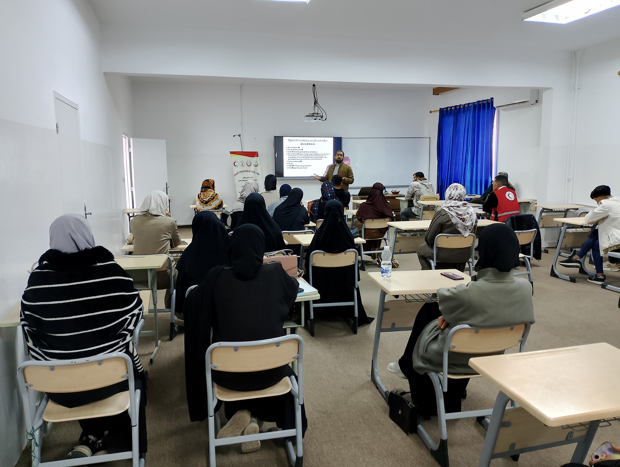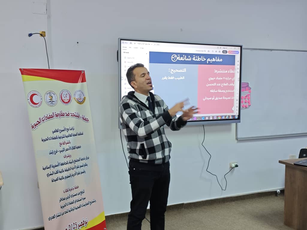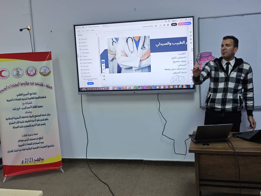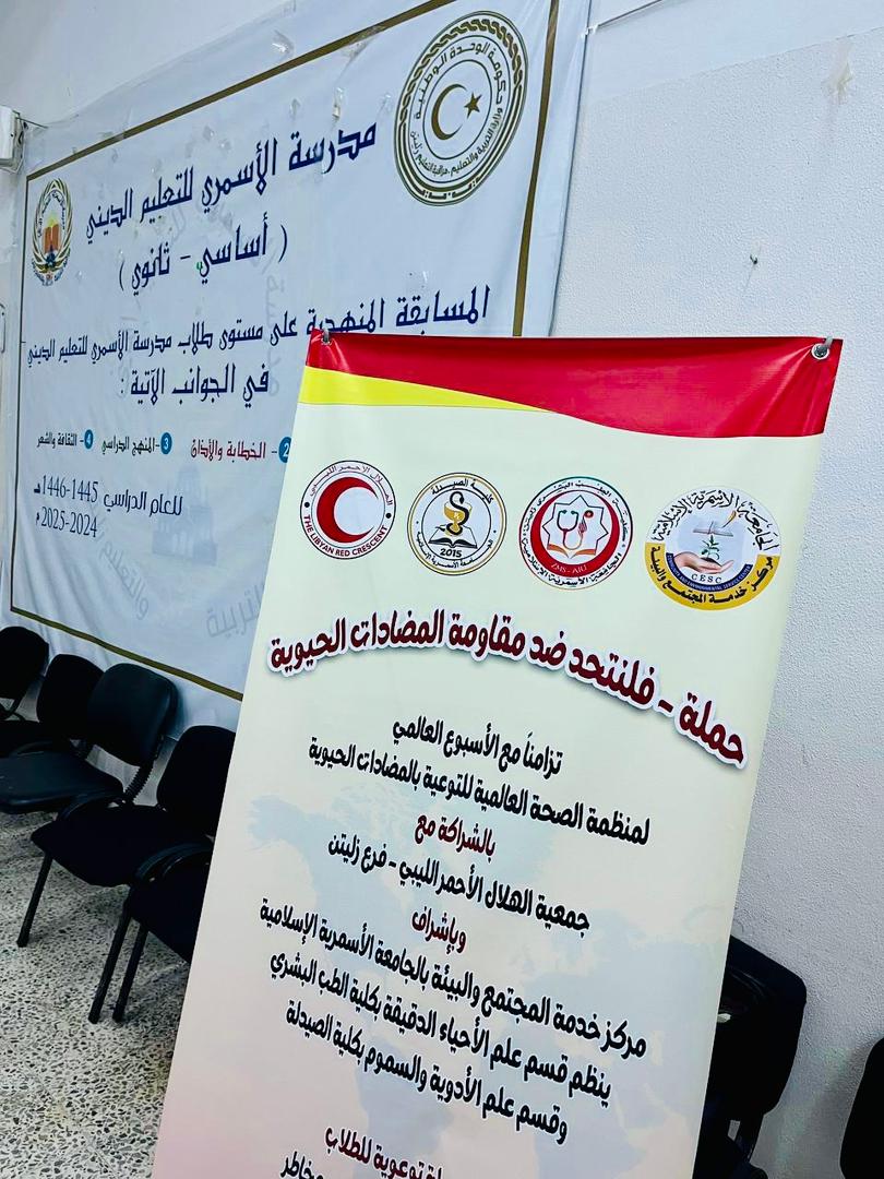 يواصل فريق التوعية بمخاطر سوء استخدام المضادات الحيوية وبإشراف مركز خدمة المجتمع والبيئة بالجامعة الأسمرية الإسلامية، وبالشراكة مع جمعية الهلال الأحمر الليبي – فرع زليتن،