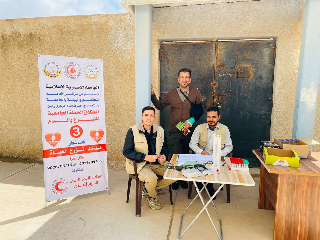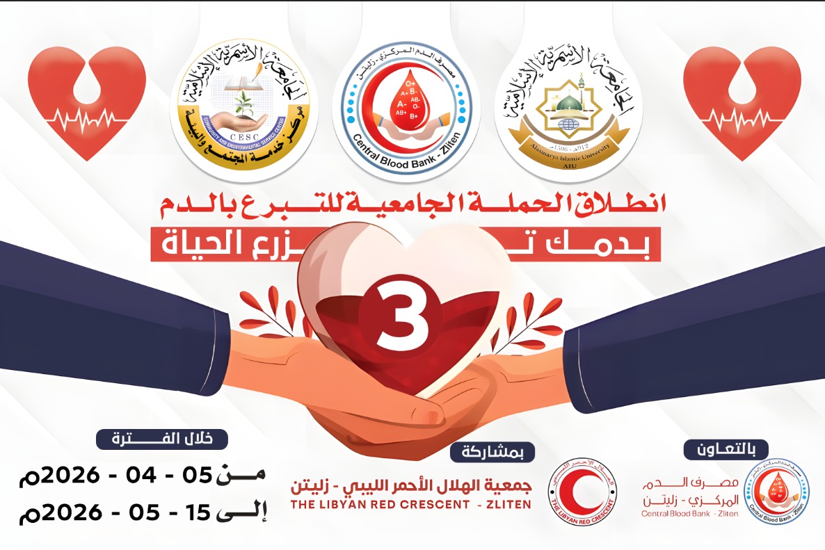 وتُقام هذه الحملة بتنظيم مركز خدمة المجتمع والبيئة بالجامعة، وبالتعاون مع مصرف الدم المركزي بزليتن، وبمشاركة جمعية الهلال الأحمر الليبي – فرع زليتن.
