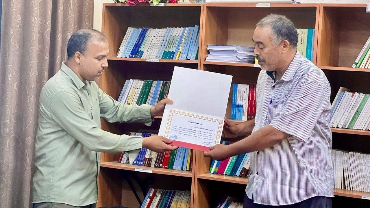 وفي ختام الدورة، قام الدكتور فتحي أبورزيزة رئيس قسم البحوث والاستشارات بالكلية بتقديم شهادة شكر وتقدير للأستاذ أحمد السليني تقديرًا لجهوده وعطائه المتميز، كما عبر عن شكره لجميع المشاركين على تفاعلهم الإيجابي ومساهمتهم الفاعلة خلال أيام الدورة.