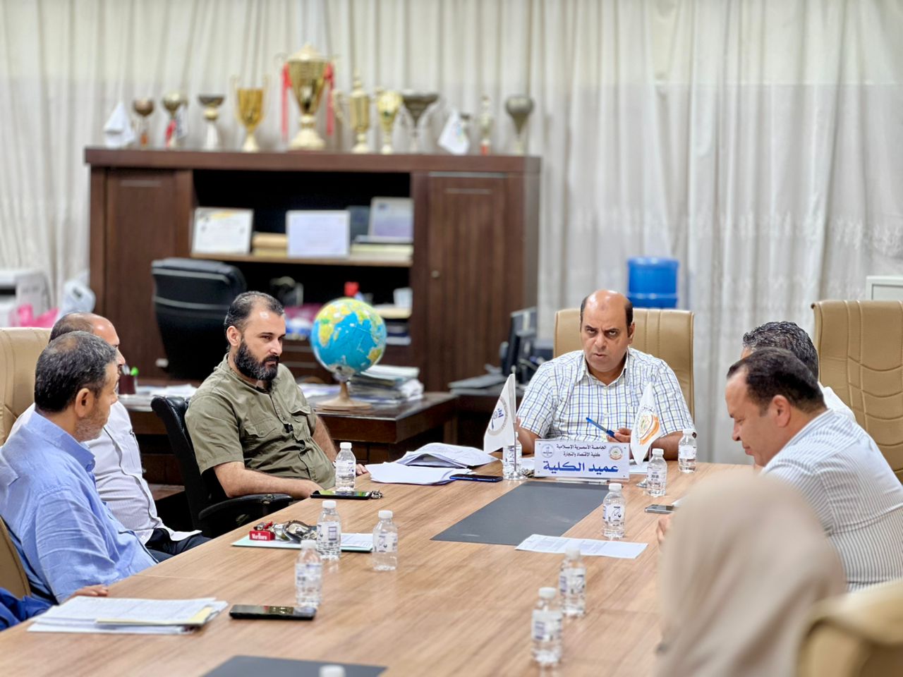 عقد صباح اليوم الأحد الموافق 26 أكتوبر 2025م، الاجتماع العادي التاسع لمجلس الكلية لسنة 2025، وذلك في تمام الساعة التاسعة والنصف صباحًا بمكتب عميد الكلية، برئاسة الدكتور التهامي عثمان الكشر عميد الكلية، وبحضور وكيل الشؤون العلمية، والسادة رؤساء الأقسام العلمية، ومديري الإدارات والمكاتب.