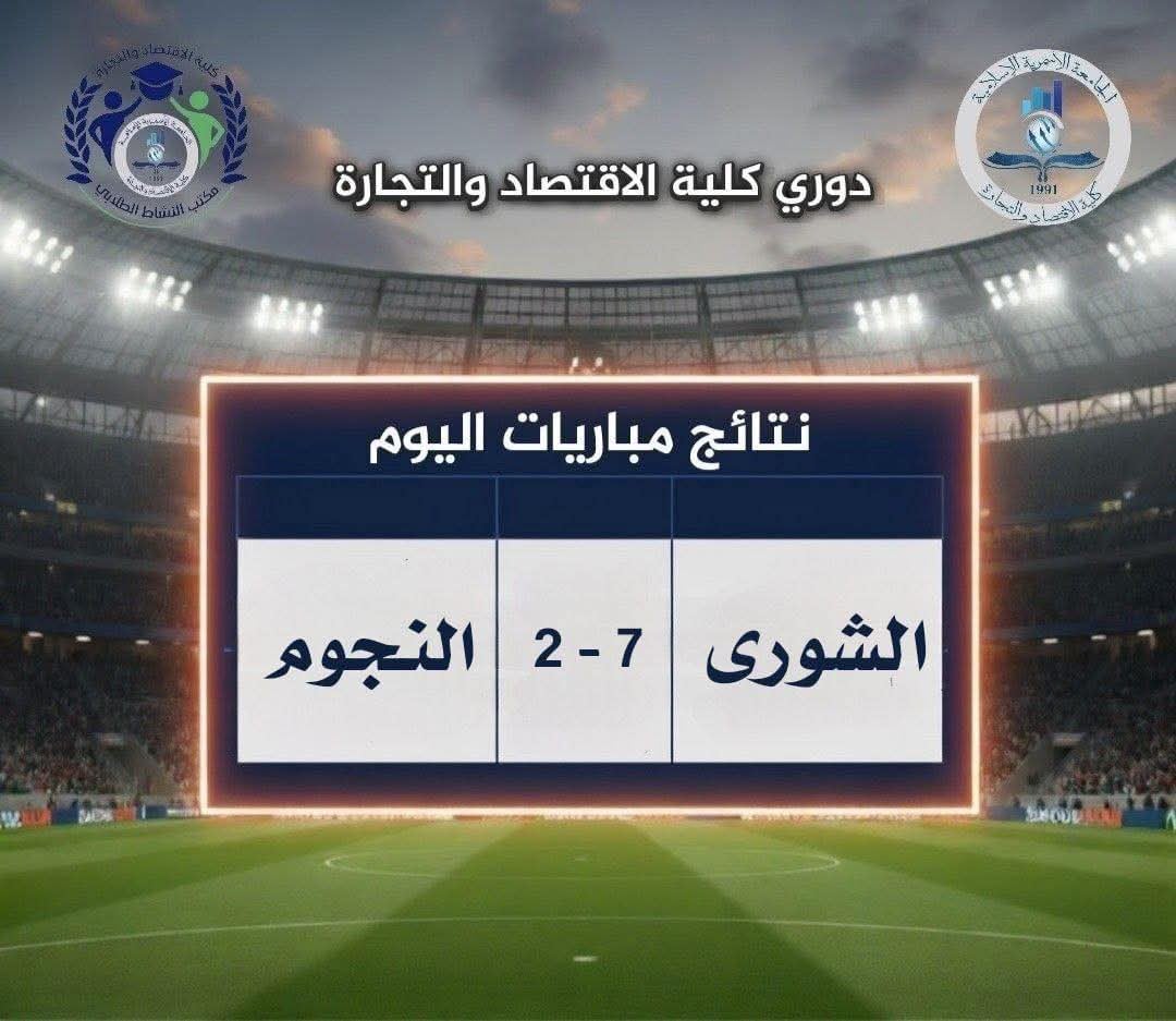 وتتقدم كلية الاقتصاد والتجارة بأحر التهاني والتبريكات إلى فريق الشورى على تتويجه المستحق، كما تثمن الجهود الكبيرة التي بذلتها جميع الفرق المشاركة، وما قدمته من مستوى راقي وروح رياضية عالية طوال أيام البطولة.