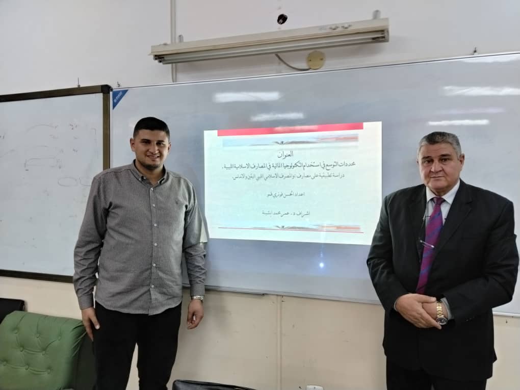 قسم التمويل والمصارف يناقش سيمينار رسالة ماجستير حول ” محددات التوسع في استخدام التكنولوجيا المالية في المصارف الليبية الإسلامية”.
