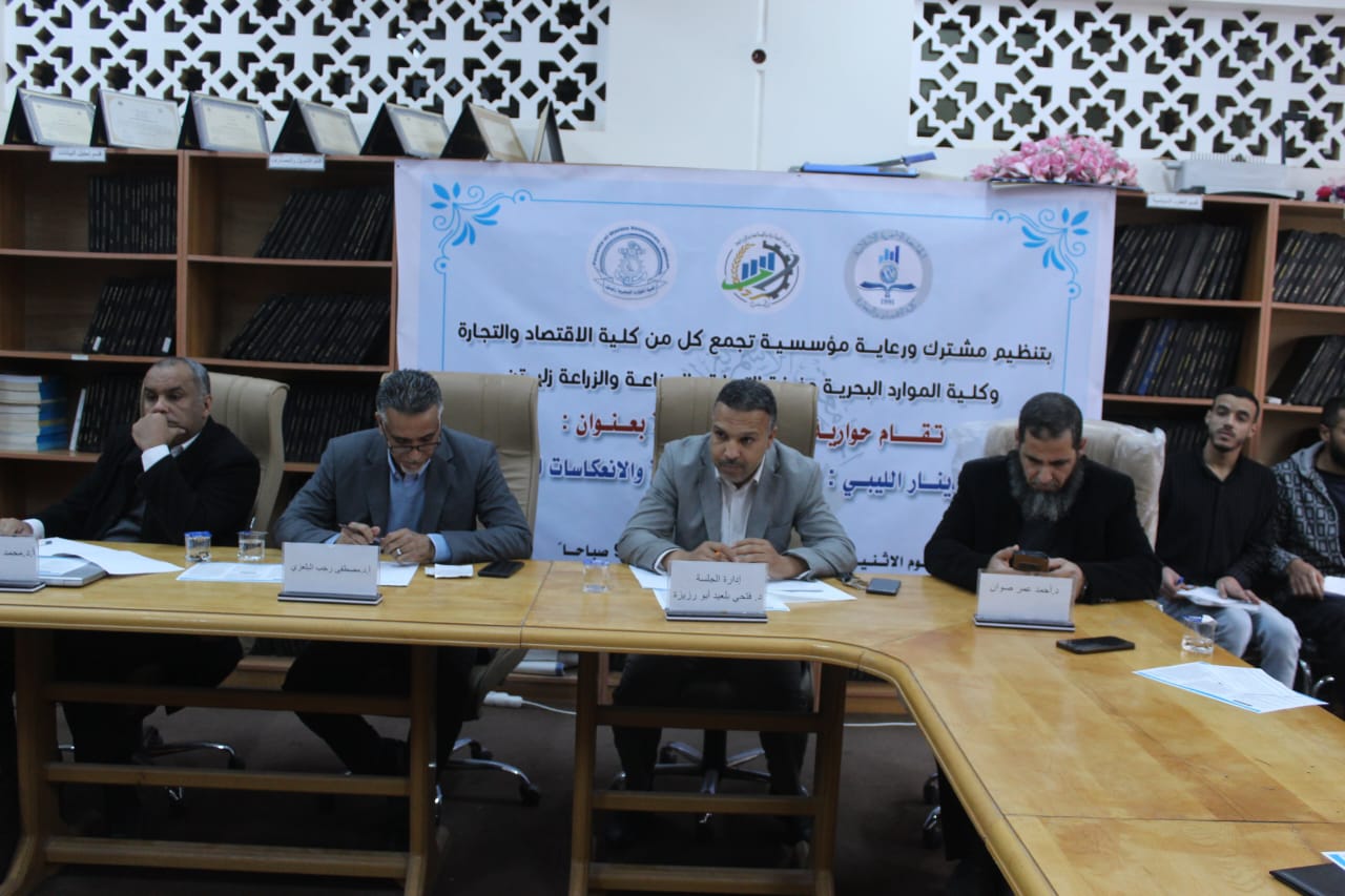 والتي نظمتها كلية الاقتصاد والتجارة بالتعاون مع كلية الموارد البحرية، وبرعاية غرفة التجارة والصناعة والزراعة زليتن، وذلك في ظل ما يعيشه الاقتصاد الليبي من تحديات انعكست بشكل مباشر على قيمة الدينار الليبي ومستوى معيشة المواطنين.