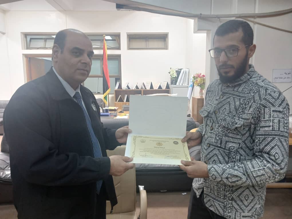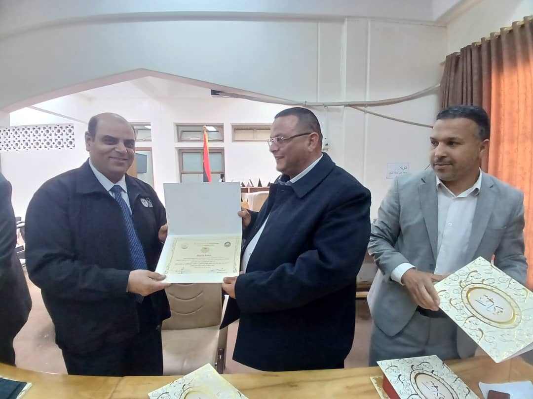 وجرى حفل التكريم بمكتب البحوث والاستشارات بالكلية، حيث قام عميد الكلية الأستاذ الدكتور التهامي الكشر رفقة وكيل الشؤون العلمية بالكلية الدكتور فرج أبوظهير، وبحضور مدير مكتب أعضاء هيئة التدريس الأستاذ الدكتور على ديهوم، ومدير مكتب البحوث والاستشارات بالكلية الدكتور فتحي أبورزيزة، إلى جانب عدد من أعضاء هيئة التدريس والطلبة المشاركين في المؤتمر، بتكريم الطلبة وتسليمهم الدروع وشهادات التقدير تقديرًا لجهودهم العلمية ومشاركتهم المتميزة.