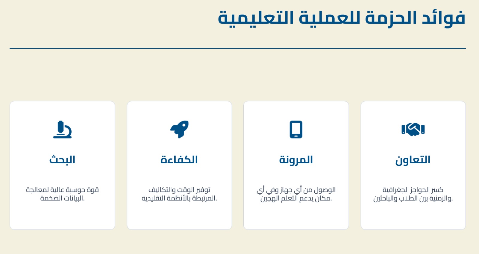 – فوائد الحزمة التعليمية.