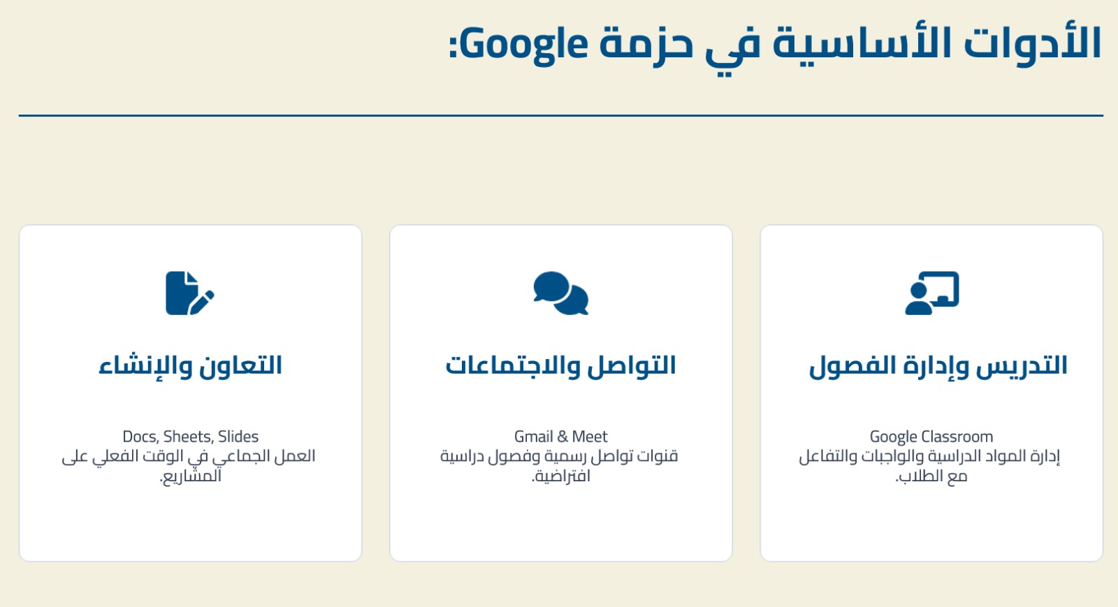 – الأدوات الأساسية في حزمة جوجل، وكانت عناصره: