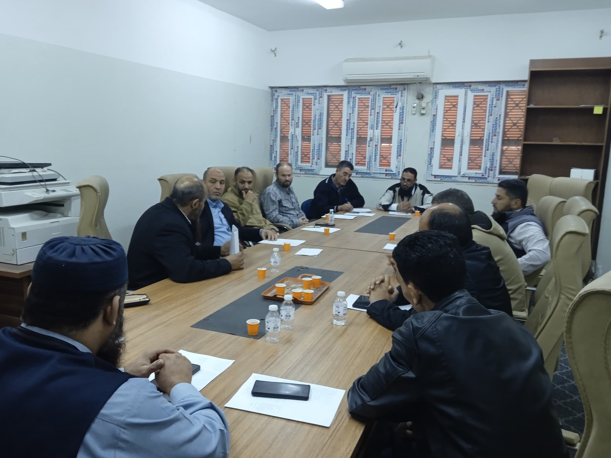 2026/2025 م صباح اليوم الأربعاء الموافق 2025/11/26 برئاسة رئيس المجلس د.عبدالله الفزاني وبحضور السادة اعضاء المجلس، رؤساء الأقسام العلمية، وشارك في الاجتماع السادة رئيس قسم الجودة أ. محمد ربح،ومسجل الكلية أ. الشعاب الصداعي، هذا وتم في هذا الاجتماع مناقشة سير العملية التعليمية وإعداد الخطة الاستراتيجية الثانية للكلية 2030/2026، ومتابعة مدى تنفيذ خطة التقديم على الاعتماد البرامجي للأقسام العلمية في الفترة القادمة. وفي ختام الاجتماع، أكد السيد عميد الكلية على ضرورة إنهاء الأعمال التي تتعلق بإيفاء متطلبات الجودة شاكرا أعضاء المجلس على جهودهم والتزامهم.