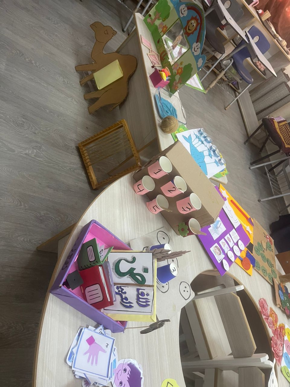 وبدورها استعرضت الأستاذة حليمة سويعد الوسائل التعليمية المستخدمة في المعمل وقدمت مراجعة على كيفية إعدادها واستخدامها مؤكدة على أهميتها في مراحل التعليم المبكر.