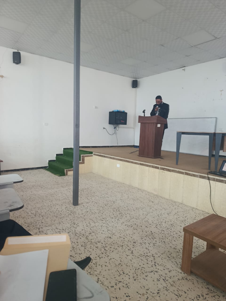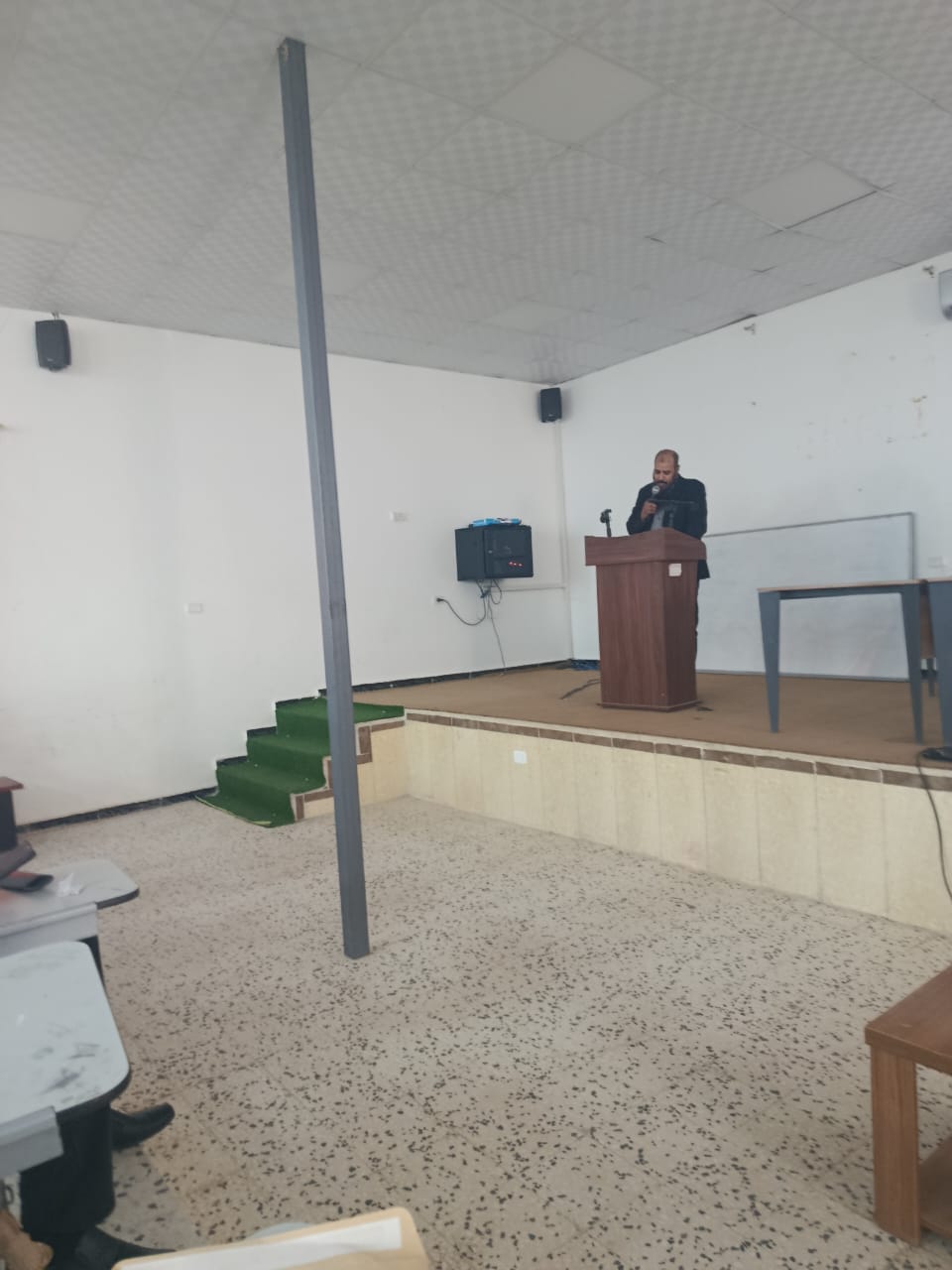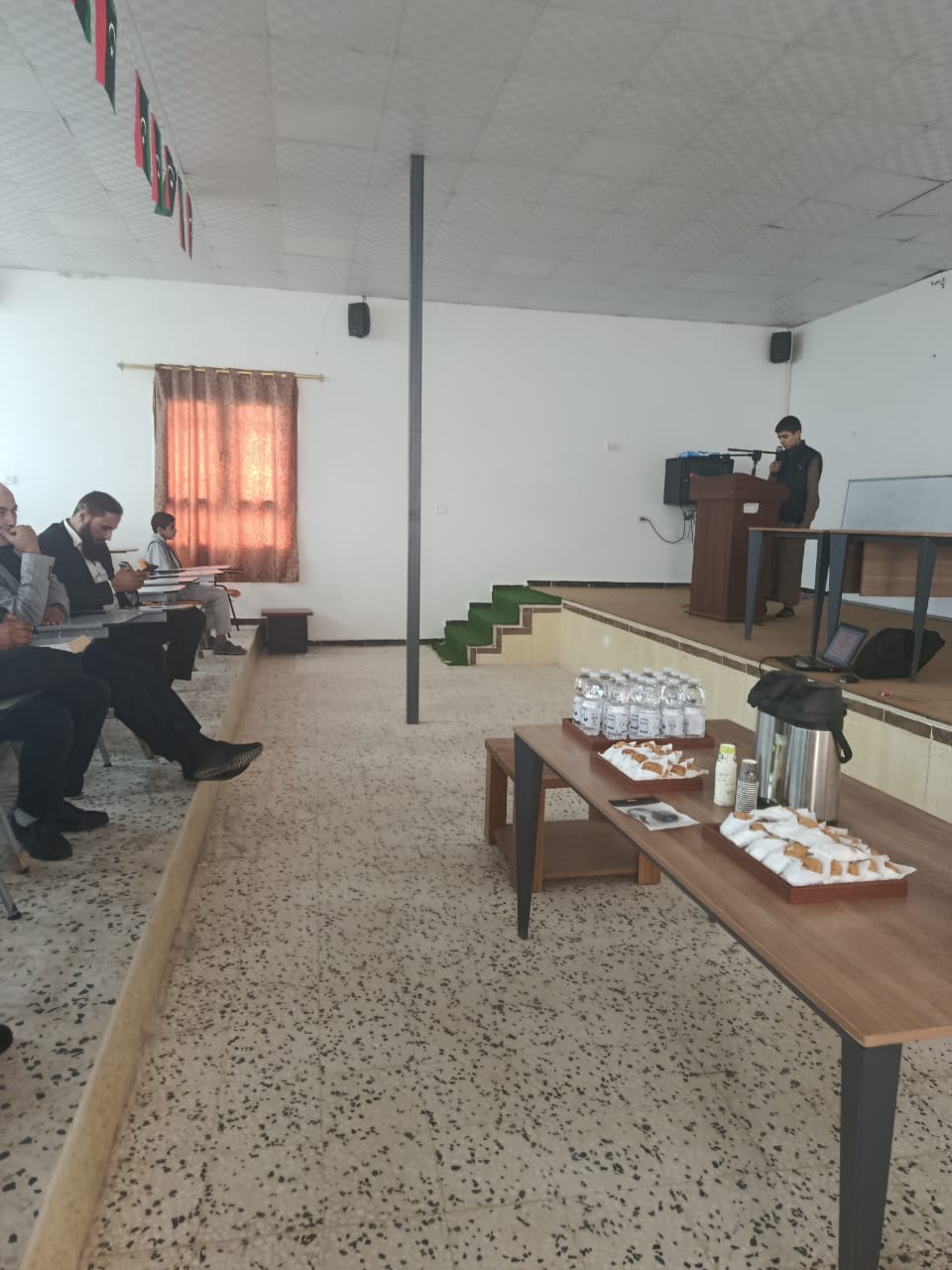 6. الأنشطة التعليمية وفعاليات خدمة المجتمع وأهمية المشاركة فيها، ألقى رئيس قسم الجودة بالكلية أ. عمران الحاكة كلمة أكد فيها على أهمية المشاركة في الأنشطة والفعاليات التى تخدم العملية التعليمية على مستوى الكلية وبرامج خدمة المجتمع المعتمدة في خطة الكلية وخطة الجامعة.