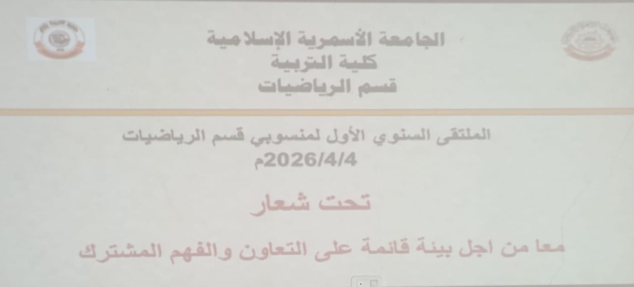 انتظم صباح يوم السبت الموافق 2026/04/04 الساعة 12:30 ظهرا بمدرج الكلية الملتقى الأول لقسم الرياضيات بعنوان (نحو بيئة أكاديمية قائمة على التعاون والفهم المشترك).