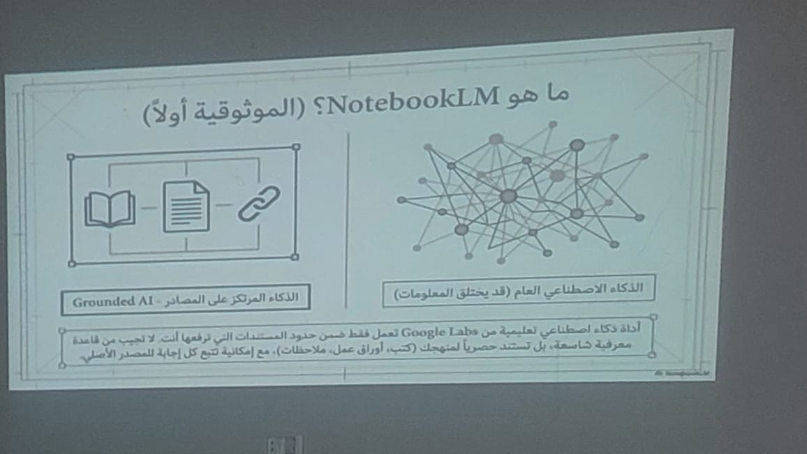 أقيمت ظهر يوم السبت الموافق 2026/04/18 في مدرج الكلية ورشة عمل بعنوان ” توظيف أداة البحث والتحليل NotebookLM في تدريس مادة الرياضيات” والتي استهدفت طالبات قسمي الرياضيات ومعلم فصل، حيث تم شرح وتوضيح كيفية استخدام هذه الأداة التقنية في الفصل الدراسي والمساهمة التي تقدمها في كافة جوانب التدريس. نظم الورشة قسم الرياضيات وقدمت مادتها أ. سهام الذويبي، عضو هيئة التدريس بالقسم، وحضرها عدد من طالبات القسمين المذكورين، هذا وتخلل محاور الورشة الإجابة على أسئلة واستفسارات الطالبات.