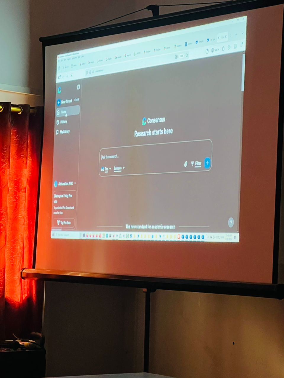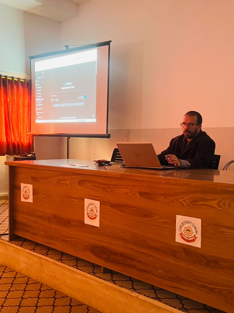 بدأت الورشة في الساعة الحادية عشرة صباحًا، واستمرت حتى الساعة الواحدة والنصف بعد الظهر. واشتملت على تعريف شامل بأهم أدوات الذكاء الاصطناعي المفيدة في مجال البحث الأكاديمي، مع مناقشة معمَّقة للقيود الأخلاقية والعملية لاستخدامها في النشر بالمجلات المصنفة ضمن قواعد بيانات سكوبس (Scopus) وويب أوف ساينس (Web of Science)، والحدود المسموح بها وفقاً للوائح الجامعة الأسمرية. كما تم توضيح الأساليب المثلى لاستخدام هذه التقنيات بما يضمن الجودة ويحفظ الأصالة العلمية.
