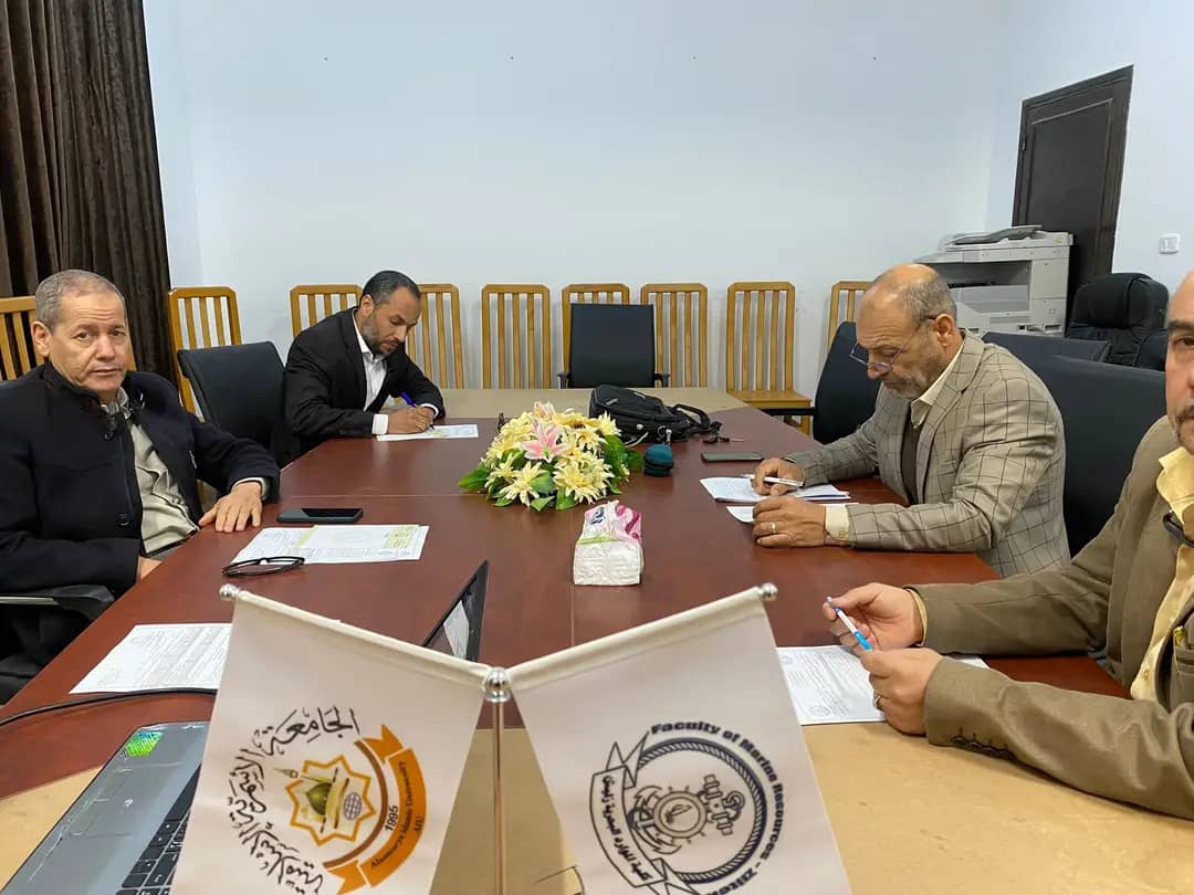 من جانبه، أكد رئيس التحرير المكلف الأستاذ الدكتور مصطفى الهادي الشريف أهمية تكاتف الجهود خلال المرحلة المقبلة، والعمل بروح الفريق الواحد لاستيفاء كافة المعايير الفنية والعلمية المطلوبة. كما استعرض الدكتور هشام جهاد مسيرة المجلة خلال السنوات الماضية، مسلطًا الضوء على أبرز إنجازاتها وتقدمها في التصنيفات العلمية محليًا وعربيًا، مؤكدًا أهمية تجاوز التحديات والانطلاق نحو مرحلة جديدة من النشر العلمي الرصين والملتزم بأخلاقيات البحث.