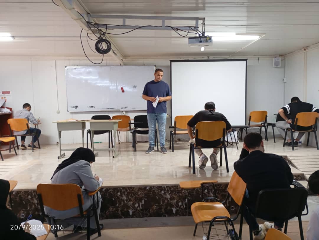وبإشراف لجنة الامتحانات والمراقبة وتقدم للامتحان 112طالب وطالبة.