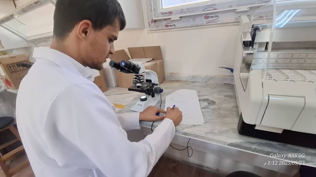 وسط التزام كامل بالإجراءات التنظيمية لضمان نزاهة وسير العملية الامتحانية. كما أُجري الامتحان العملي داخل معمل القسم، حيث تم اختبار مهارات الطلبة في تشخيص العينات.