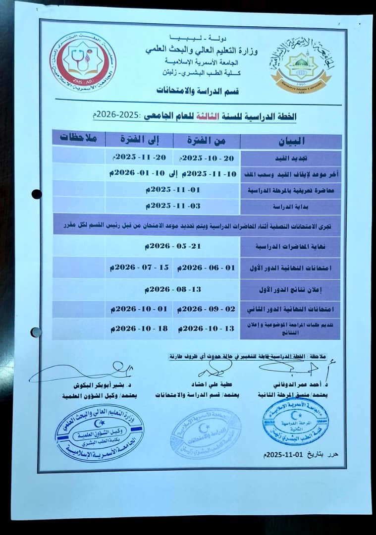 #إعلان الخطة الدراسية للسنة الثالثة العام الجامعي 2025-2026