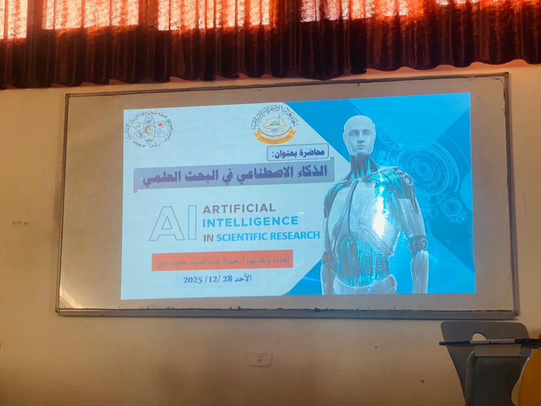 تحت شعار «البحث العلمي ودوره في تنمية النظم التعليمية»، نظّم مركز البحوث والاستشارات بالتعاون مع قسم الإحصاء، اليوم الأحد الموافق 28 ديسمبر 2025، في تمام الساعة الحادية عشرة صباحًا، محاضرة علمية بعنوان «الذكاء الاصطناعي في البحث العلمي»، قدّمها الأستاذ حمزة عبد الصمد محمد علي، وذلك بحضور عدد من الأساتذة والباحثين والمهتمين بالشأن الأكاديمي.