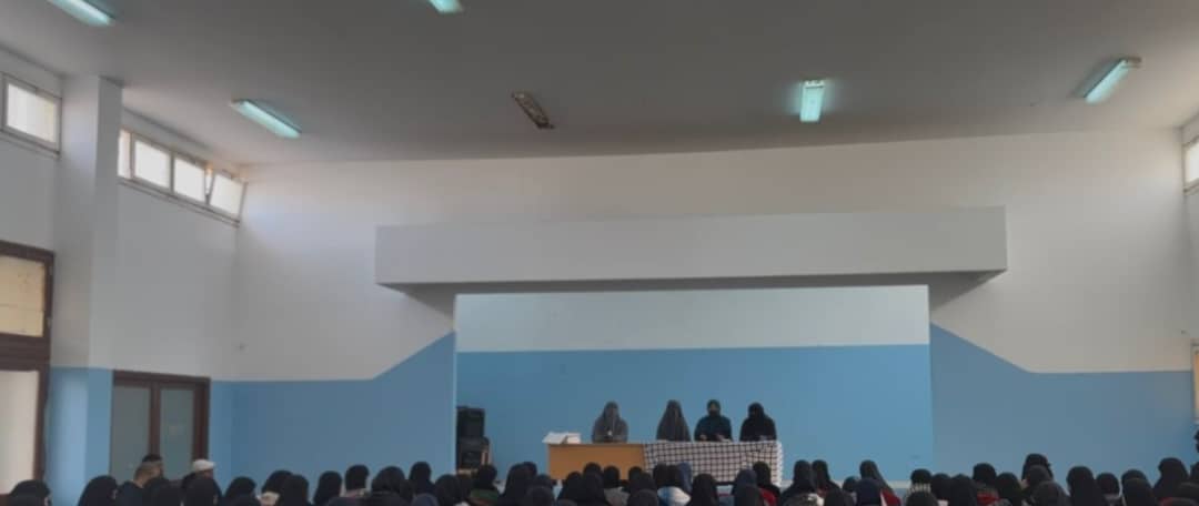 نظم قسما الشريعة، والشريعة والقانون، ومكتب البحوث والاستشارات، ومكتب الخدمة الاجتماعية بالكلية محاضرة علمية توعوية ضمن سلسلة محاضرات تؤطرها نخبة من طالبات قسمي الشريعة، والشريعة والقانون، داخل الكلية وخارجها، وقد أُطّرت المحاضرة بثانوية رابعة العدوية للبنات بمدينة مسلاتة، تحت عنوان: «جيلٌ على الجادّة: امرأةٌ بعلمها وحيائها»، وذلك يوم الإثنين الموافق (15. 12. 2025م) على تمام الساعة (12:30 ظهرًا).
