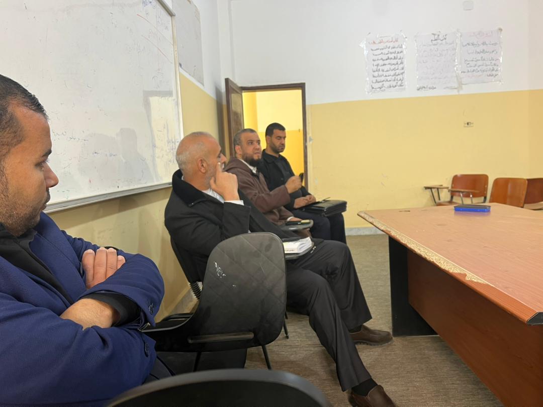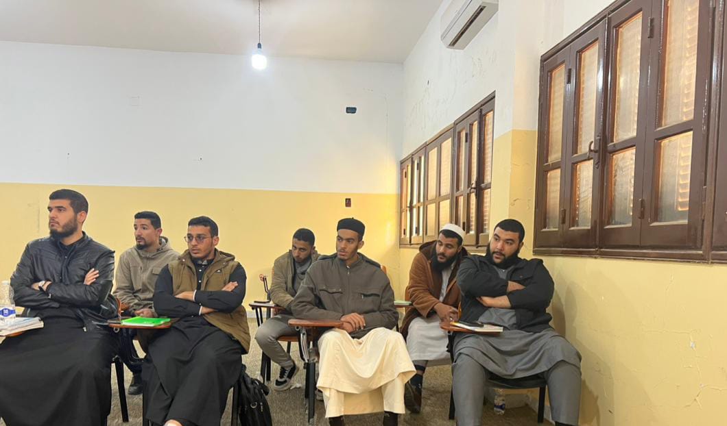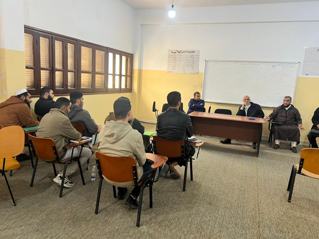 عُقد يوم الإثنين الموافق: 16. 02. 2026م على تمام الساعة: 10:30 صباحا لقاء علمي حواري حضره رئيس مكتب البحوث والاستشارات، وثلثة من أعضاءِ هيئةِ التدريس، وطلبة وطالبات الفصل الثامن بمختلف الأقسامِ العلميةِ بالكلية.
