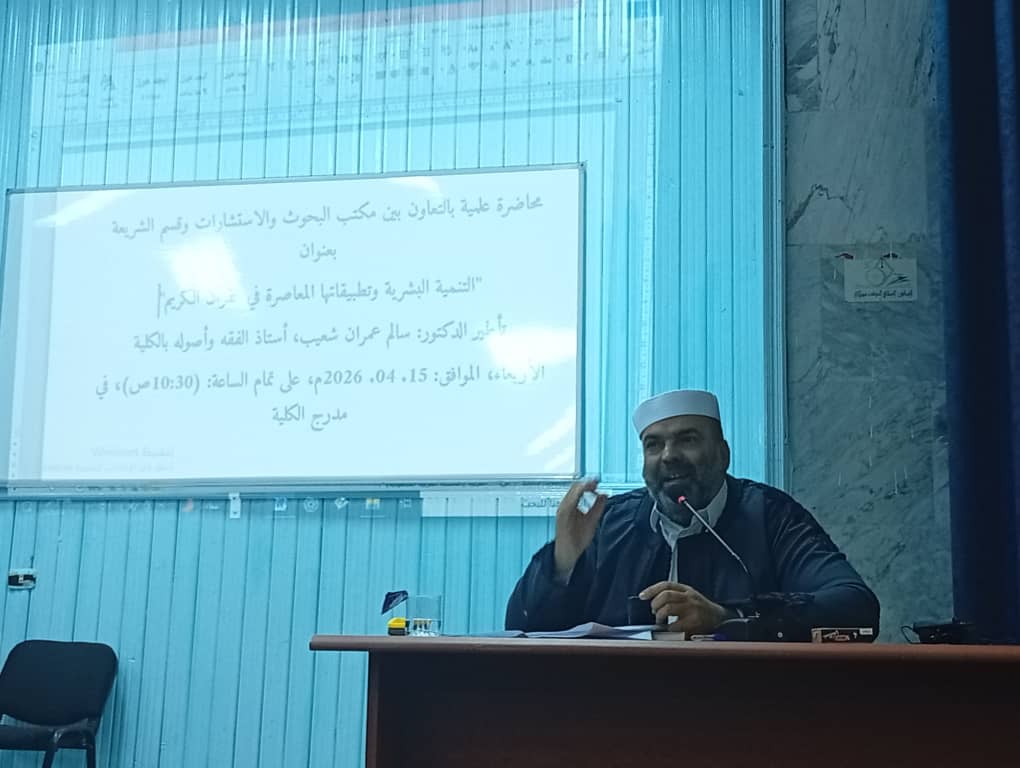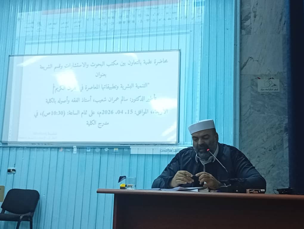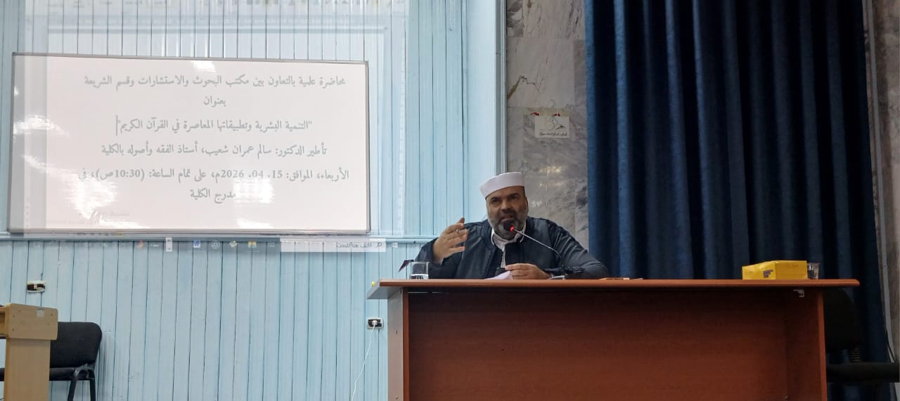 نظّم مكتب البحوث والاستشارات، بالتعاون مع قسم الشريعة بالكلية، محاضرة علمية بعنوان: