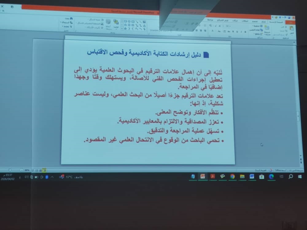 ألقاها الدكتور: فرج الحويج على جمع من الطلاب الخريجين لهذا الفصل –الربيع للعام الجامعي 2026م- وذلك لكتابة مشاريع التخرج وفق متطلبات مركز البحوث العلمية بالجامعة.